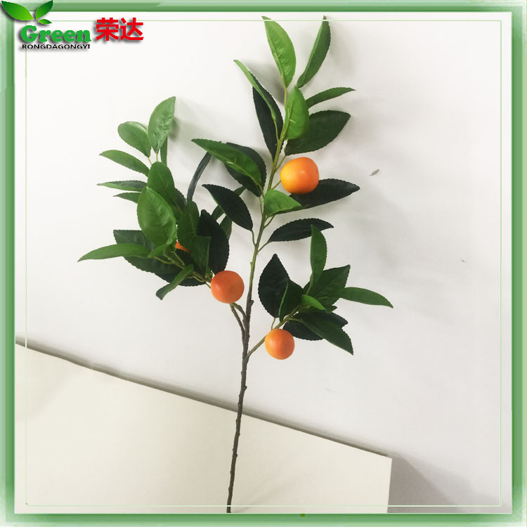 仿真桔子枝做工精细、纹路清晰。由于叶子材质是胶质手感叶,所以仿真度比较高。而且具有易清洗 易打理、不变形、不退色等特点。