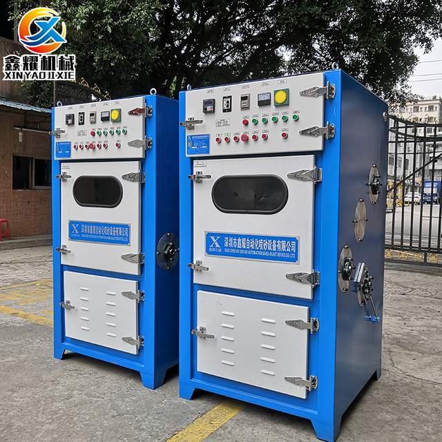 深圳鑫耀履带式自动毛边机处理压铸或射出成型之热硬性电木制品的毛边,由自给式投射装置、机箱,环带输送装置、除尘,除静电等装置组合为一体,无需气源带动。投射材经由高速旋转的叶轮投射在制品上,对于片状的毛边及凹部或孔内的毛边,均能在短时间内去除。投射力量之大小,可在控制面板上的变频器键盘调整适当的旋转数。深圳鑫耀履带式毛边机主要用于电木筷子毛边处理,电源开关,小家电制品,塑料外壳、树脂、电木(骨架)、合金压铸件、ABS、DAP、LCP、PPS等热固性塑料材质之毛边可有效的去除。投射经由高速旋转的叶轮投射到产品上,对于片状的、凹部、或孔内的毛边均能在短时间内去除,投射力量的大小可在控制面板上的变频按键调整,产品处理后,个个漂亮并有光泽,因本机设有特别除灰尘的自动加湿及自动吹静装置。