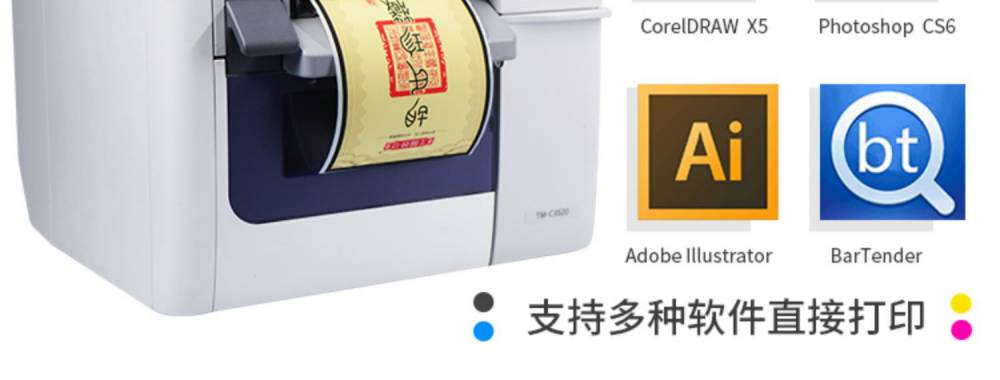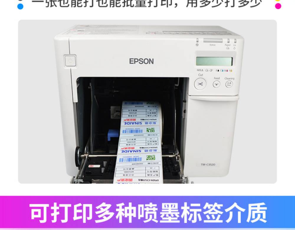 TM-C3520作为爱普生彩色标签领域的新一代产品,秉承爱普生微压电打印技术,再配以4色分体墨盒和自动切刀 设计,在提供用户高质量彩色标签按需输出的同时,有效降低 TCO(综合使用成本)。