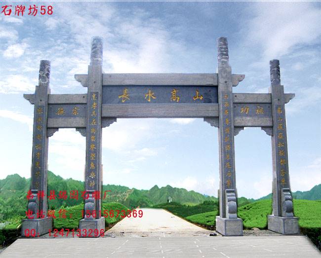 石牌坊,一种中国特有的门洞式建筑,《现代汉语词典》里的解释为“形状像牌楼的建筑物,其实石牌楼就是豪华样式的牌坊,在石牌坊上面添加檐楼就是石牌楼,在古代修建石牌坊牌楼多用来表彰忠孝节义、对社会有贡献的的人物。牌坊是中国汉族特色建筑文化之一,是封表彰功勋、科第、德政以及忠孝、节义所立的纪念性建筑物,同时也是村口的导向标,是村大门大门标志建筑。