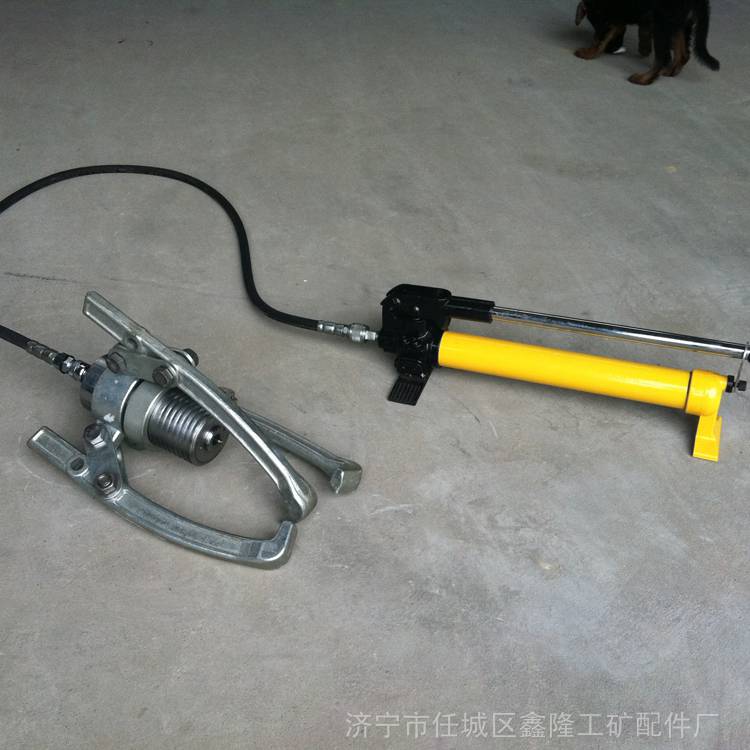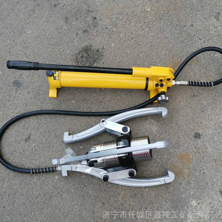 分体液压拉马是以油压起动杆直接前进移动,故推动杆本身不做转动。钩爪座可随螺纹直接做前进后退之调距,操作时只要把手前后小幅度摆动,油压起动杆前移,钩爪相对应后退,所被拉物体拉出。