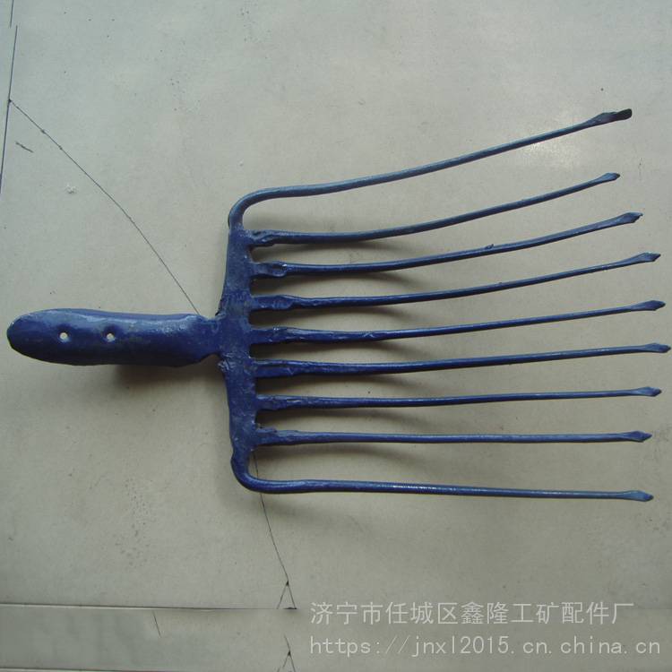 九齿叉是指九个耙钉的耙,又名九齿叉和九股钢叉,主要用于修筑铁路,矿井,矿山开采等工程, 是一种实用性的小工具!常用于道床坡脚石碴整理,道床边坡整修,收集散碴和杂草清除等作业。钢叉由九齿徘列成锹状