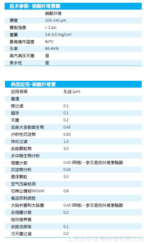 滤膜可以在不失完整的情况下在121摄氏度下进行正常消毒。硝酸纤维素膜有圆片、方片和卷等不同规格。