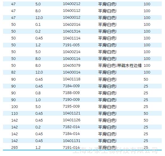 这是大多数实验室应用的标准滤膜,用于1.0 μm-12.0 μm大小的颗粒和细胞。过滤后的残留物大多数保留在膜的表面,可以进行沉淀物回收和显微镜观察。