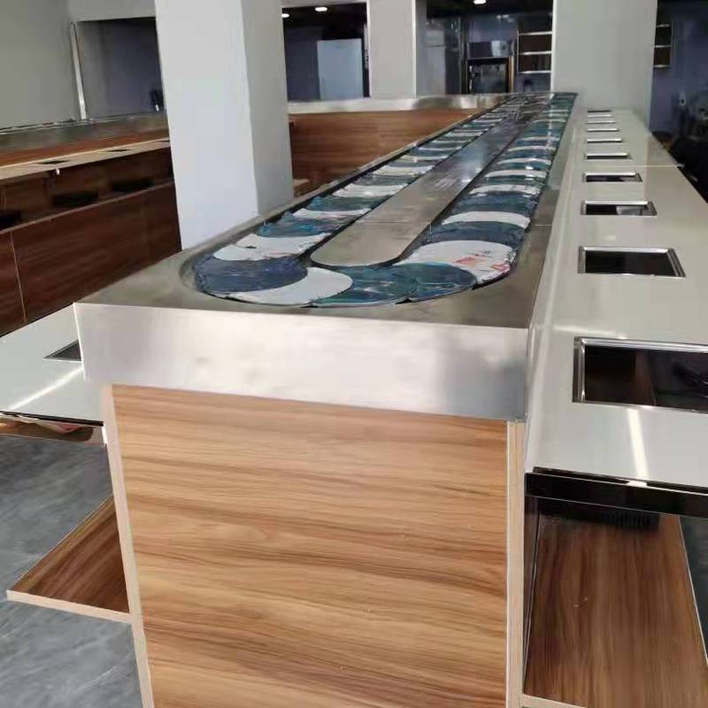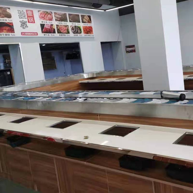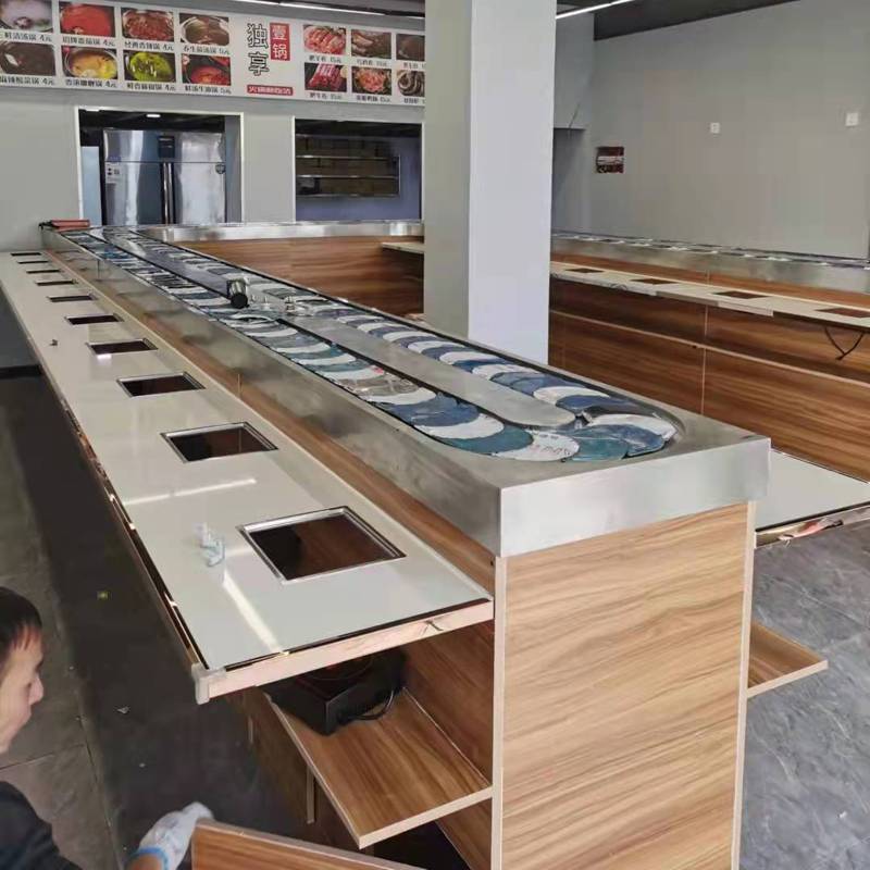 主要采用304不锈钢材质和工程塑料等美观 卫生的材料制造而成,输送链板采用304不锈钢制造,输送方向,速度任意可调,是各种自助火锅,自助早餐的时尚设备。采用苏亮等荷叶片,变频器采用220V,2HP-系列,线速2-8米/分钟可调,电磁炉加热块,纯铜线丝更稳定 .