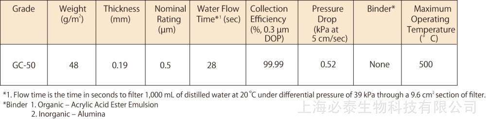 ADVANTEC玻璃纤维滤纸GC-50:厚度比较薄的滤纸,具有高过滤效能,可作为滤膜预过滤,闪烁计数;无粘合物;***高使用温度:500℃;重量:48g/m2;厚度:0.19mm;理论孔径大小:0.5µm;直径:47mm; 100片包装。另有直径55mm、70mm、90mm、110mm、125mm、150mm、300*300mm。孔径0.3um 0.5um 0.7um 1.0um 1.2um 1.5um 1.6um 2.0um玻璃纤维滤纸现货供应刘小姐