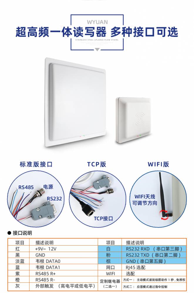 - 支持外接1个天线,实现一体式双天线读写(选配)