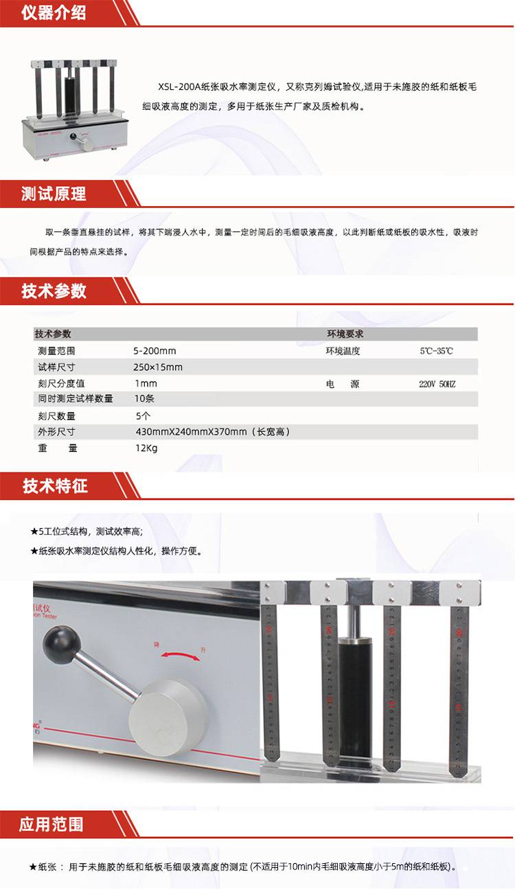 克列姆吸水性能试验仪纸张吸水率测试仪XSL-200A配件