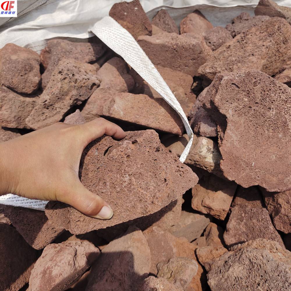 火山石是熔融的岩浆随火山喷发冷凝而成的密集气孔的玻璃质熔岩,其气孔体积占岩石体积的50%以上。因孔隙多、质量轻、容重小于1克/立方厘米,能浮于水面而得名。它的特点是质量轻、强度高、保温、隔热、吸音、防火、无***性等,是理想的天然绿色、环保节能的建材原料。