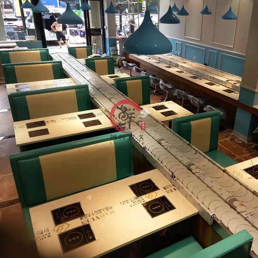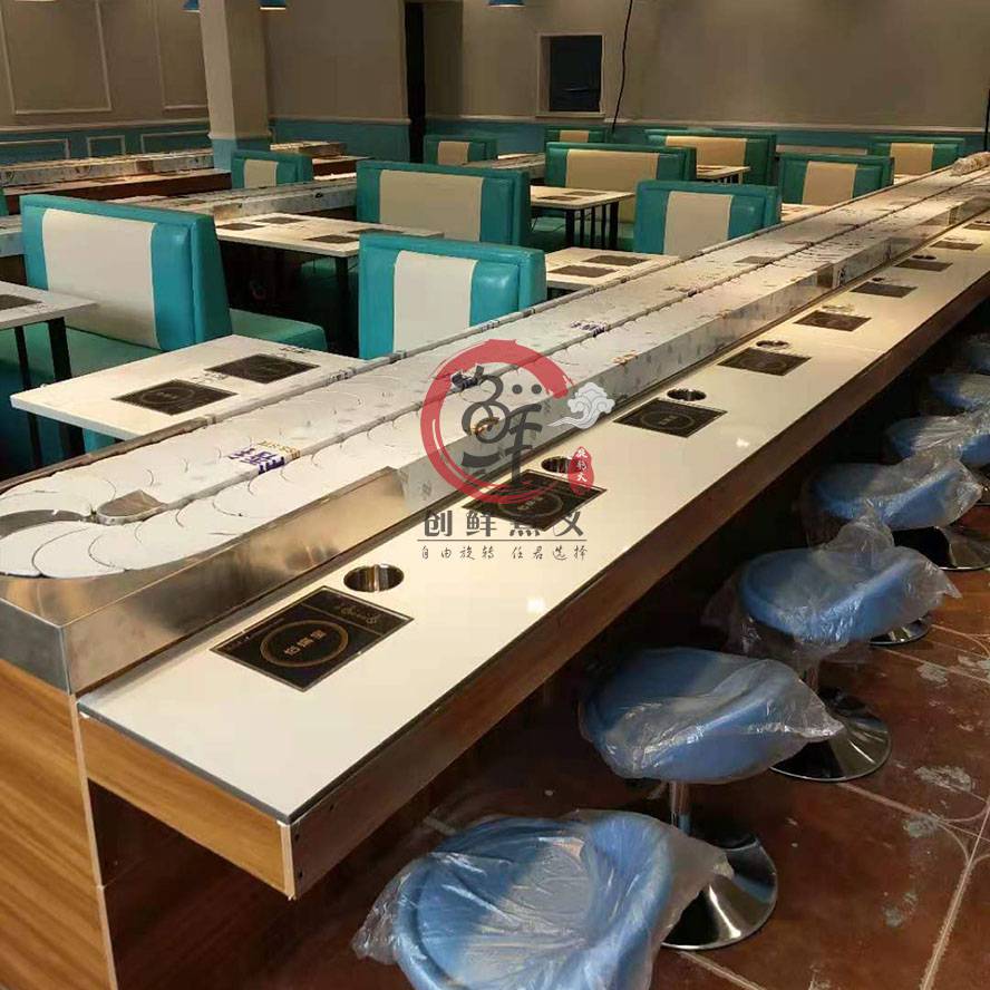旋转火锅四人卡座设备回转小火锅设备***多人桌子小火锅创鲜煮义旋转火锅