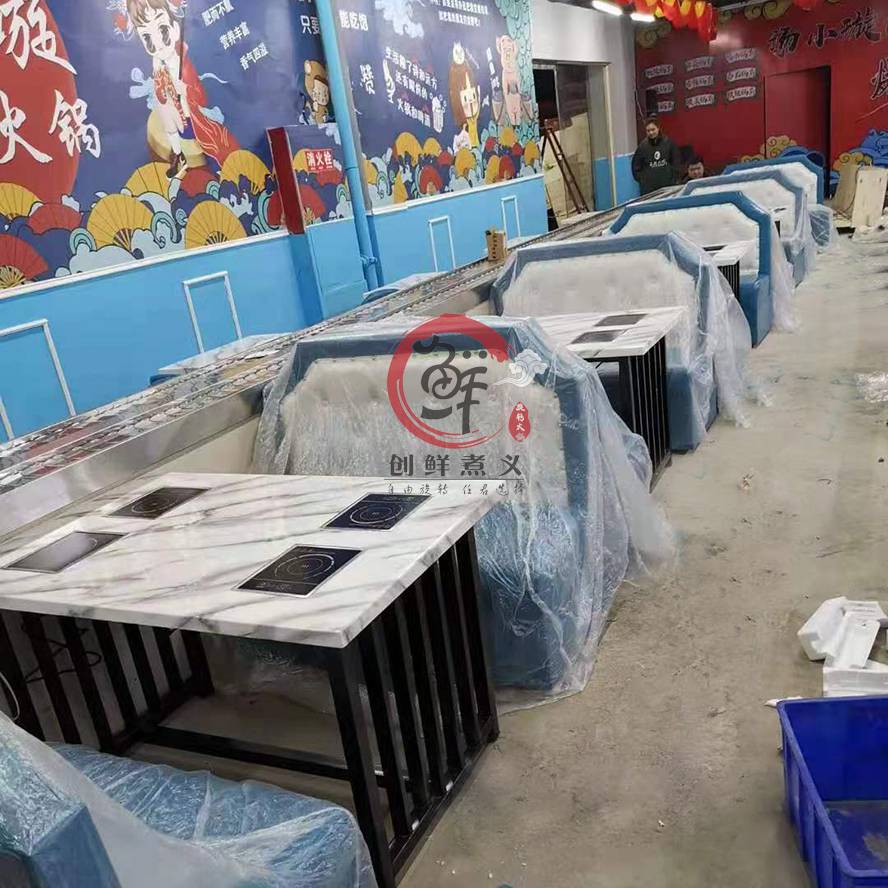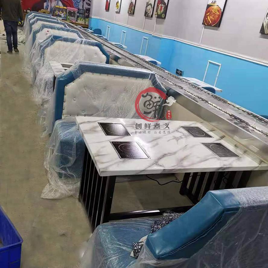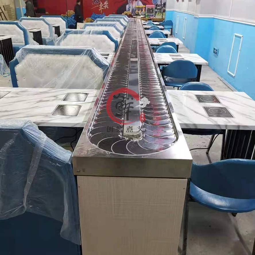 主要采用304不锈钢材质和工程塑料等美观 卫生的材料制造而成,输送链板采用304不锈钢制造,输送方向,速度任意可调,是各种自助火锅,自助早餐的时尚设备。采用苏亮等荷叶片,变频器采用220V,2HP-系列,电磁炉加热块,纯铜线丝更稳定 .