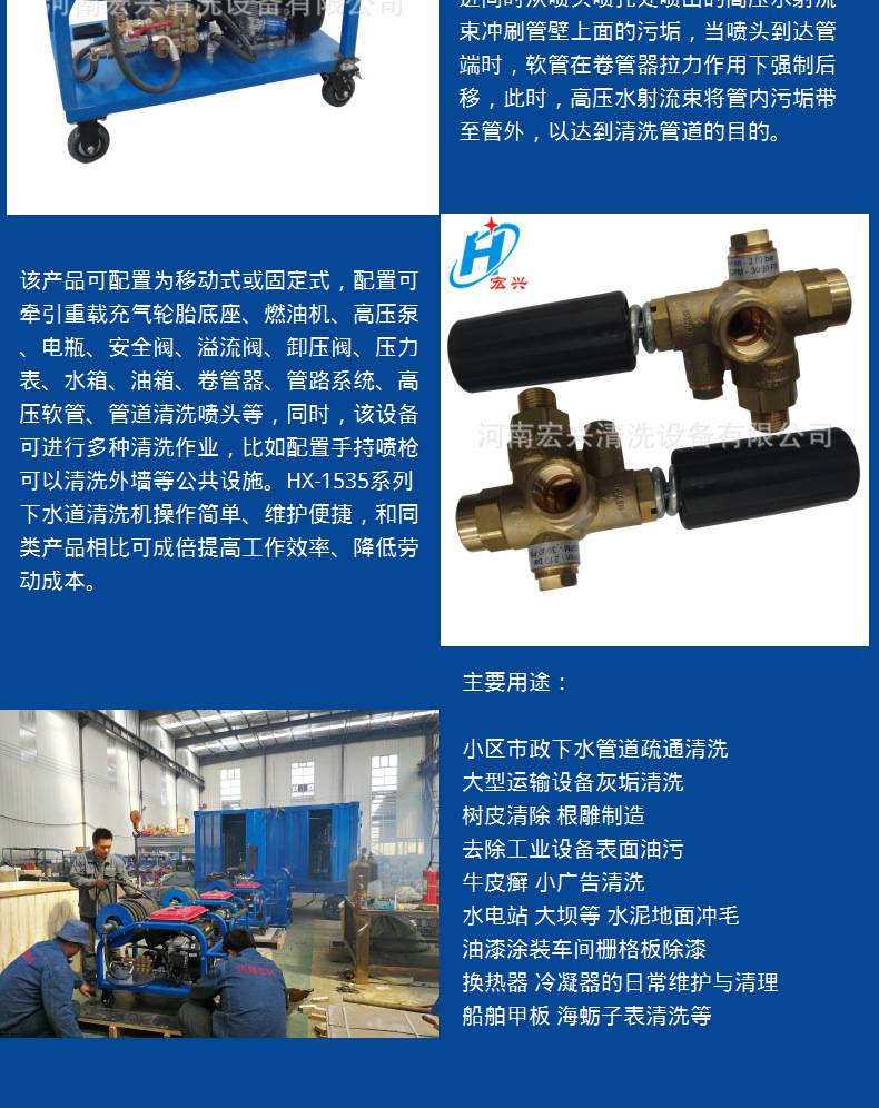 河南宏兴清洗设备有限公司位于闻名遐迩的中国交通枢纽中原***--郑州市。公司位于郑州市高新区,拥有标准化重型工业厂房,各种大中型金加工、铆焊、装配设备,是***从事高压泵与清洗设备研制与生产的高新技术企业。本公司具有多年生产历史,引进国外***技术,结合国内外实际情况所研制生产的清洗设备有:高压清洗机、超高压清洗机、管道清洗机、下水道清洗机、高压冲毛机、根雕树皮清洗机、高压泵、柱塞泵、调剖泵、油田注水泵、喷淋加湿泵、高压水枪等。其他辅助设备部分产品已经达到***水平。