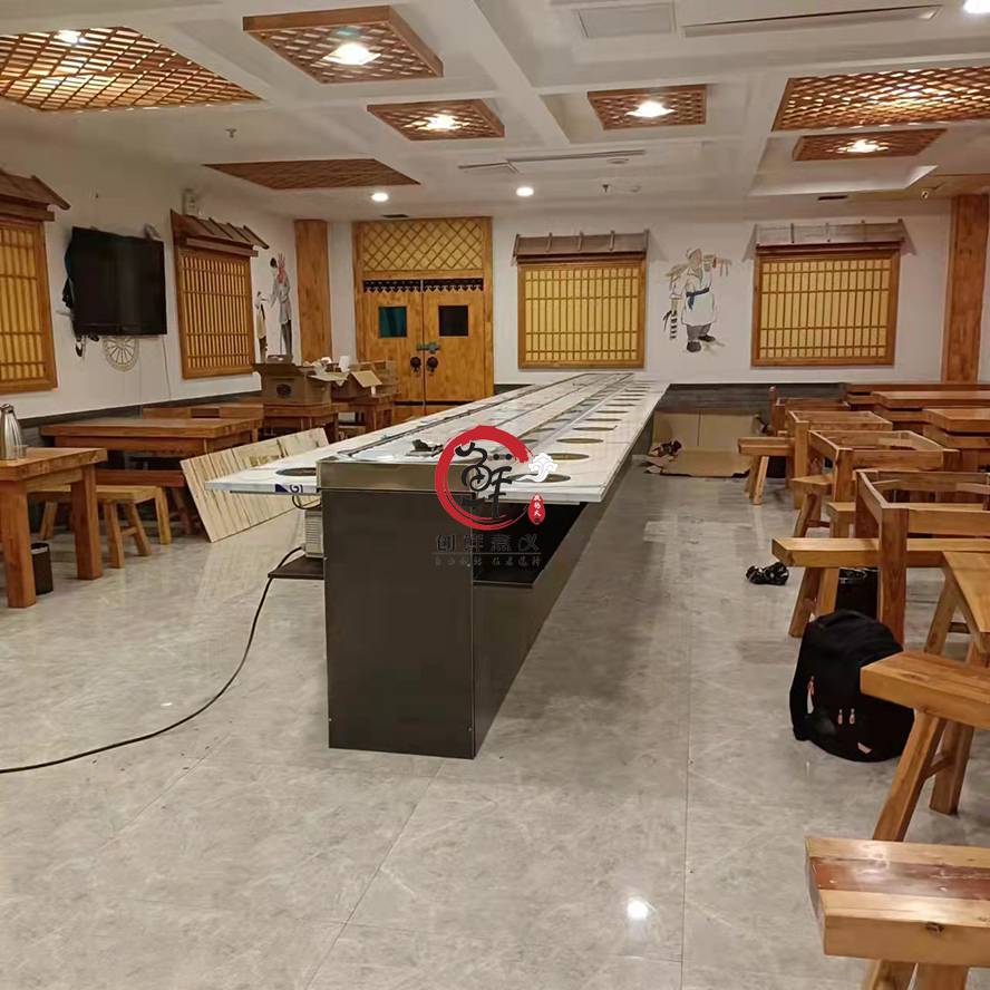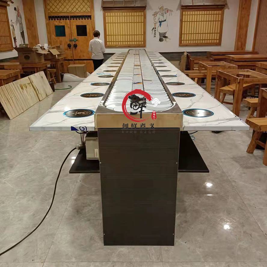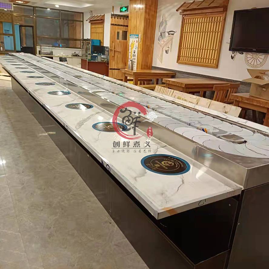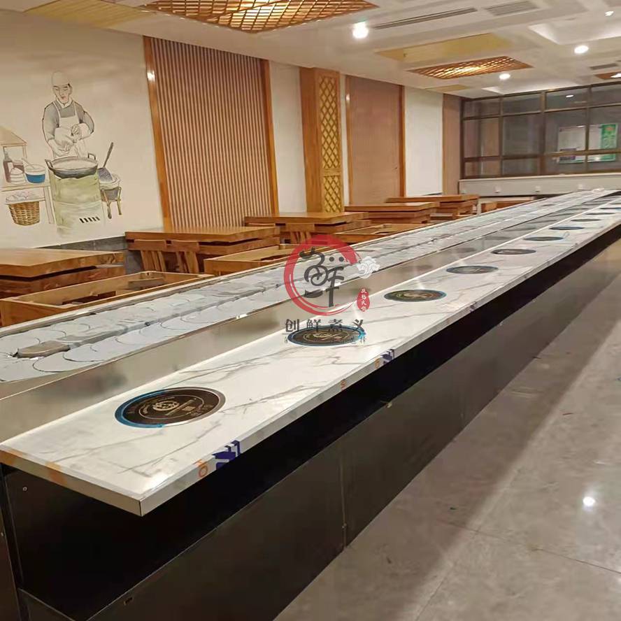 主要采用304不锈钢材质和工程塑料等美观 卫生的材料制造而成,输送链板采用304不锈钢制造,输送方向,速度任意可调,是各种自助火锅,自助早餐的时尚设备。采用苏亮等荷叶片,变频器采用220V,2HP-系列,线速2-8米/分钟可调,伊派电磁炉加热块,纯铜线丝更稳定 .