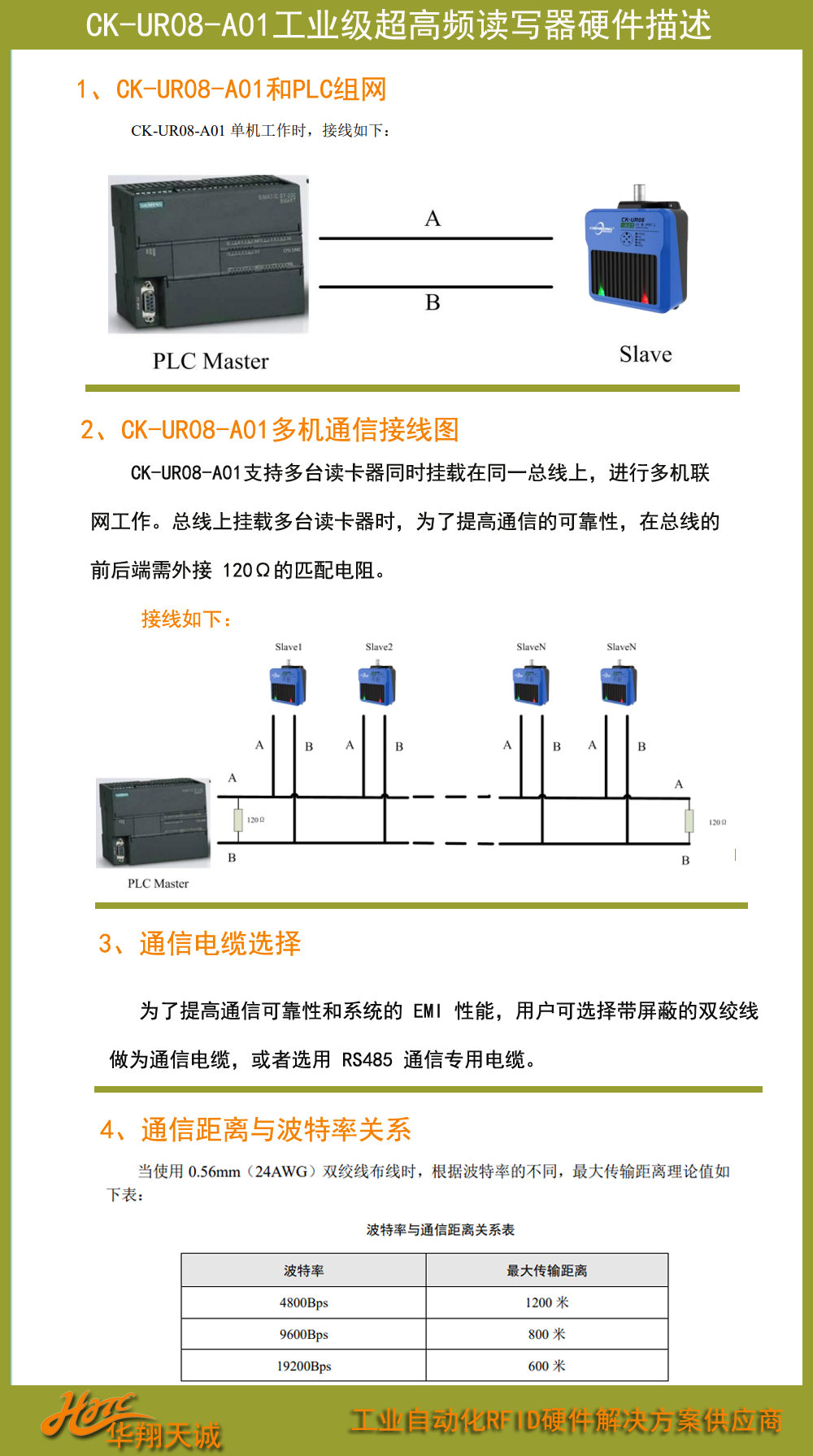 Modbus超高频载码体工装容器读写头 工业UHF读写器CK-UR08-A01广泛应用在工业上,工业自动化、流水线生产、物料运输、无人车载导航、生产线自动化环节、自动化饲喂环节等领域上的应用。例如生产线读写器,在生产线各个节点安装RFID读写器设备来了解生产线的详细工作情况,将会成为工业生产中应用***广的射频识别形式。