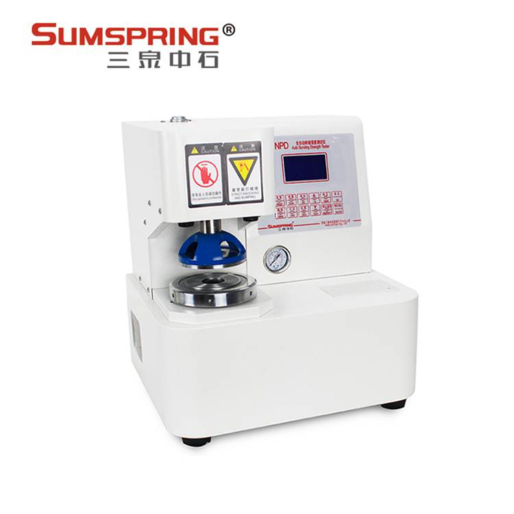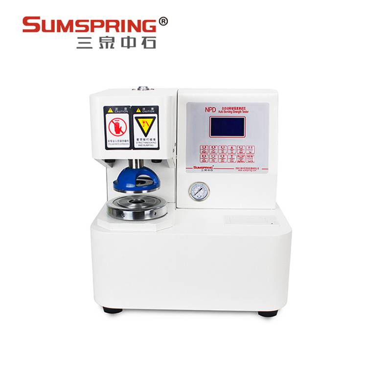 将试样装夹在耐破度仪两个夹头之间弹性胶膜上,上下夹头紧紧夹住试样周边,使试样与胶膜一起自由凸起,当液压流体以稳定速率泵入,使胶膜凸起直至试样***时,所施加的Z大压力即为试样耐破强度。