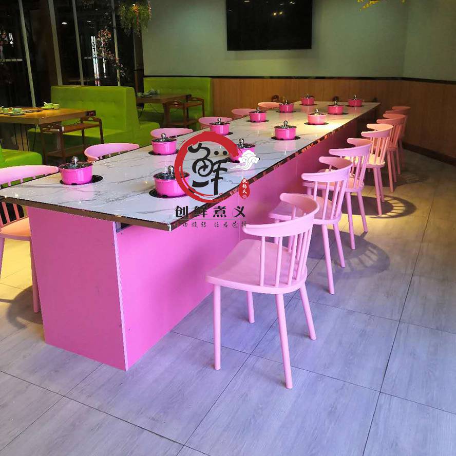 火锅桌子自助麻辣烫旋转台山东转转火锅颜色创鲜煮义火锅设备