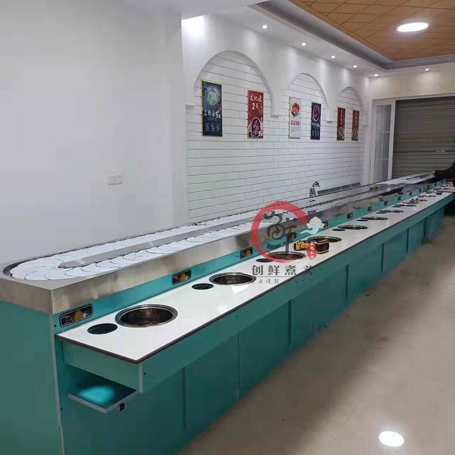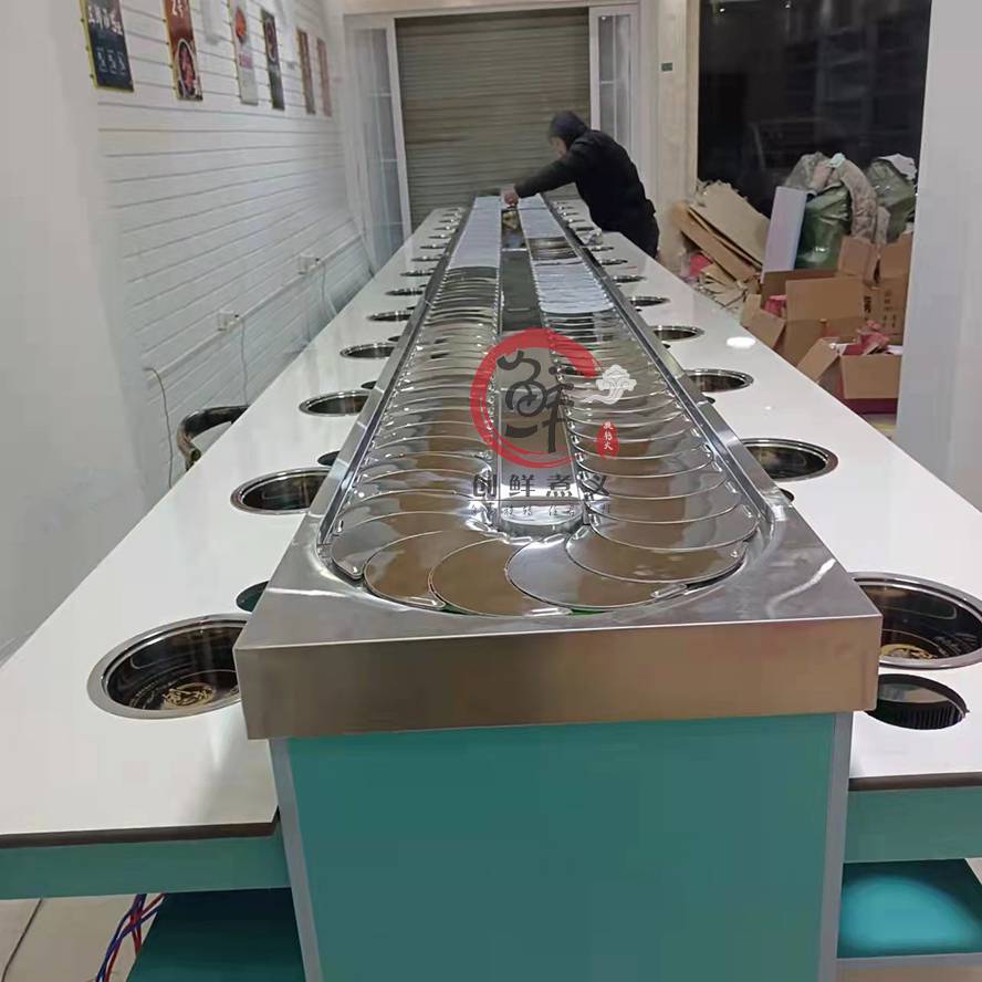 主要采用304不锈钢材质和工程塑料等美观 卫生的材料制造而成,输送链板采用304不锈钢制造,输送方向,速度任意可调,是各种自助火锅,自助早餐的时尚设备。采用苏亮等荷叶片,变频器采用220V,2HP-系列,线速2-8米/分钟可调,伊派电磁炉加热块,纯铜线丝更稳定 .