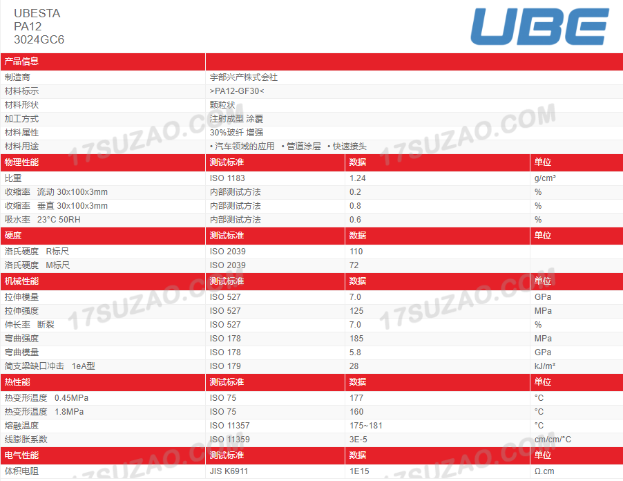 PA12日本宇部3024GC630玻纤增强级汽车领域的应用