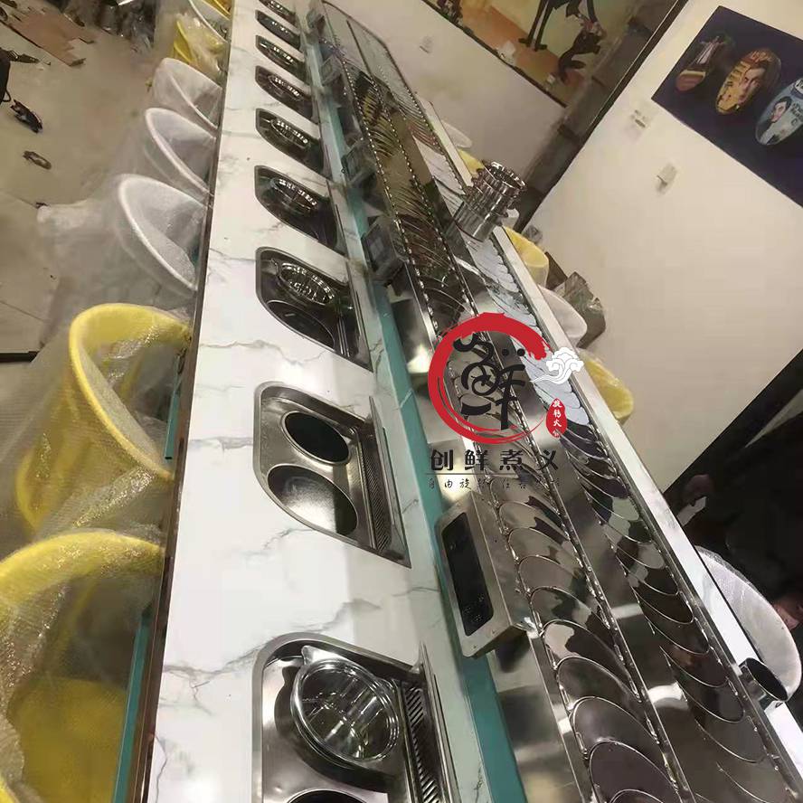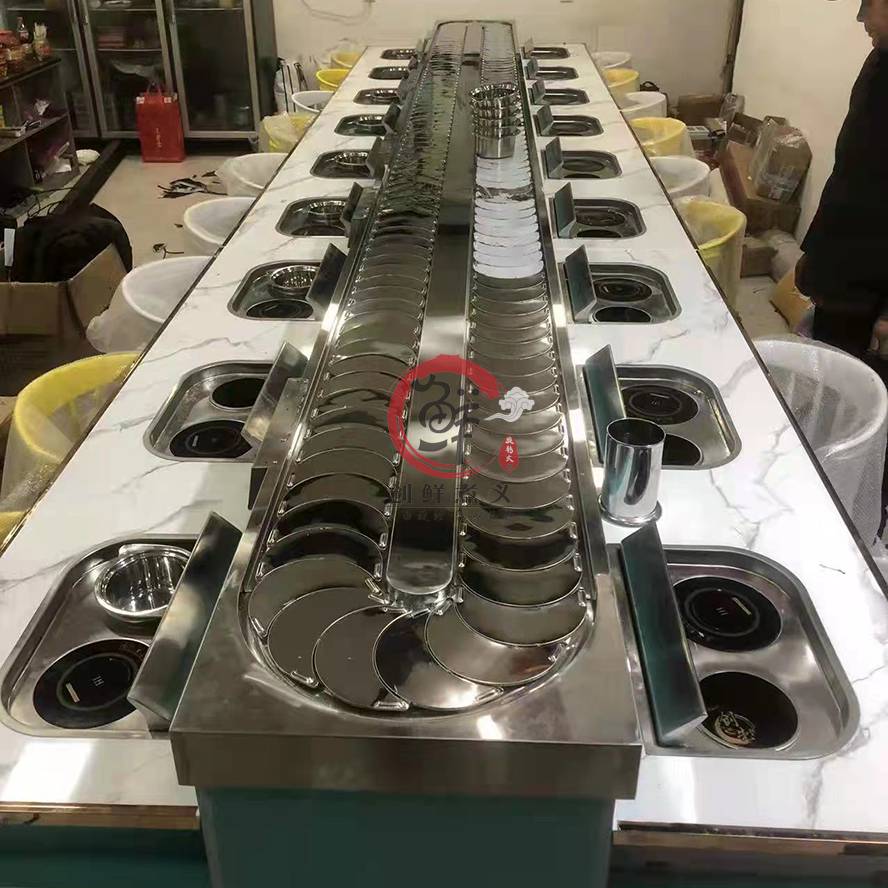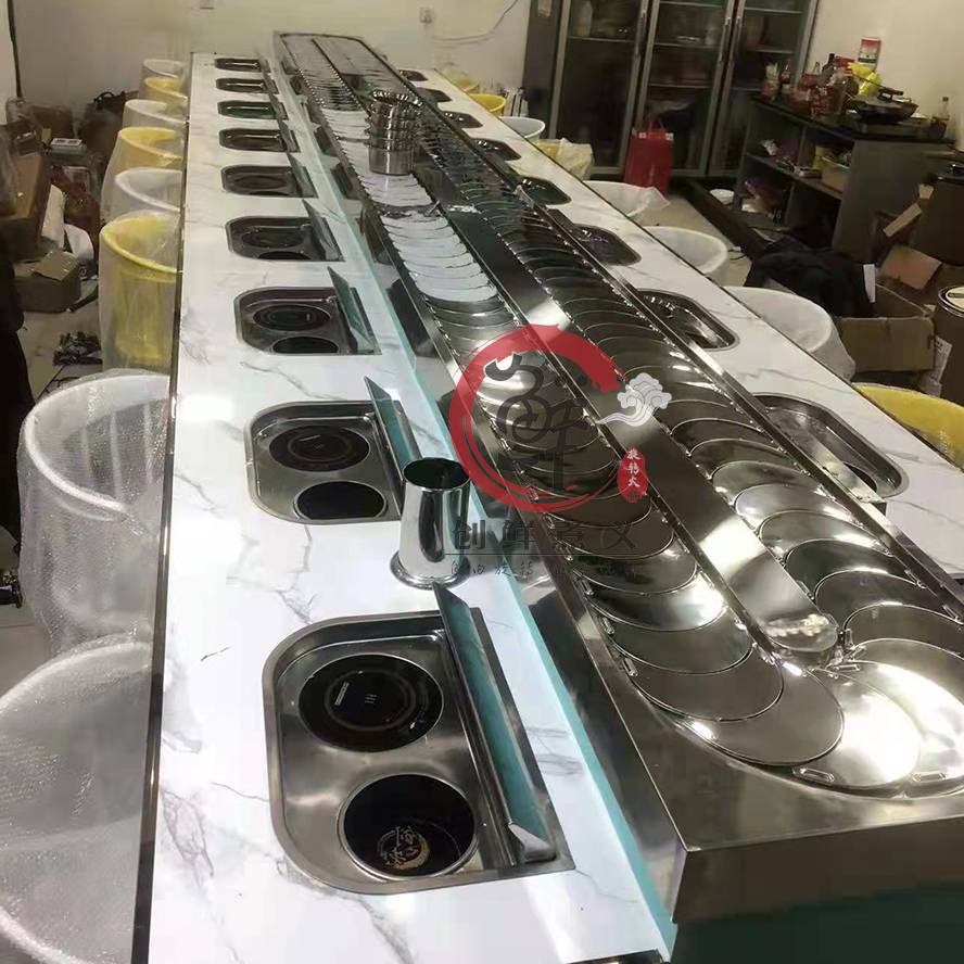 主要采用304不锈钢材质和工程塑料等美观 卫生的材料制造而成,输送链板采用304不锈钢制造,输送方向,速度任意可调,是各种自助火锅,自助早餐的时尚设备。采用苏亮等荷叶片,变频器采用220V,2HP-系列,电磁炉加热块,纯铜线丝更稳定 .