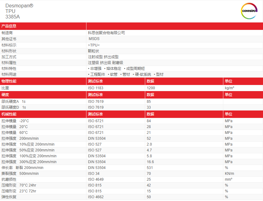 TPU原料性能特性: