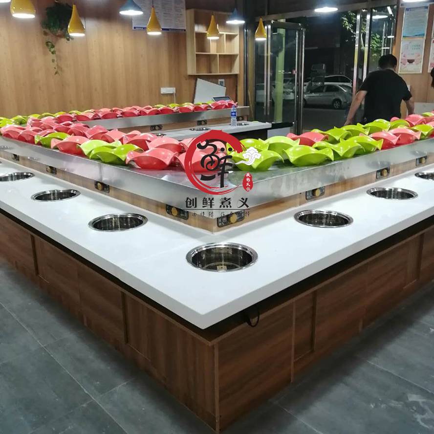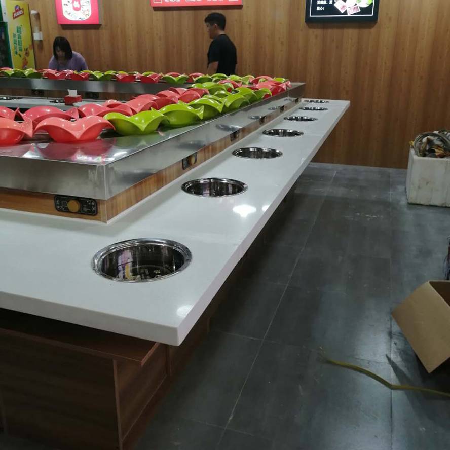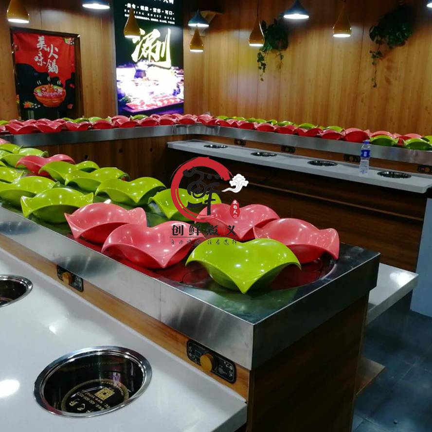 主要采用304不锈钢材质和工程塑料等美观 卫生的材料制造而成,输送链板采用304不锈钢制造,输送方向,速度任意可调,是各种自助火锅,自助早餐的时尚设备。采用苏亮等荷叶片,变频器采用220V,2HP-系列,电磁炉加热块,纯铜线丝更稳定 .