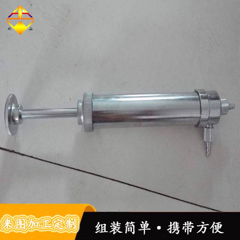 采样前先将吸气端与***管道上的取气端接上,在将排气端与***检定器(或取样袋)连接。采气样时,拉动活塞拉杆,吸气端内的单向阀打开,管道内***被吸入气筒内,而后向前快速推动活塞拉杆,排气端内的单向阀打开,将气筒内的***送入***检定器(或取样袋)内。如此重复数次,即可将***采入***检定器(或取样袋)内。
