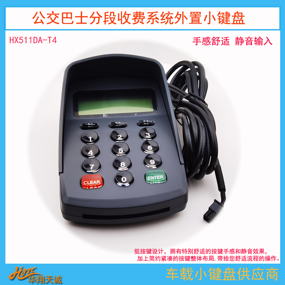 RS232串口车载PINPAD 司机身份识别密码键盘 HX511DA-T4,带液晶显示屏,常用于公交车载机、公交***机的指令或金额输入。通过GPS或北斗***外设,可实现数据上传与指令发送,如可实现上班签到、故障报修、请求排班、路抛、司机交班,紧急报警、燃料不足、暂停营运等指令输入,数据可通过GPS或北斗***系统上传至调度中心,广泛应用城市公交、巴士等领域!