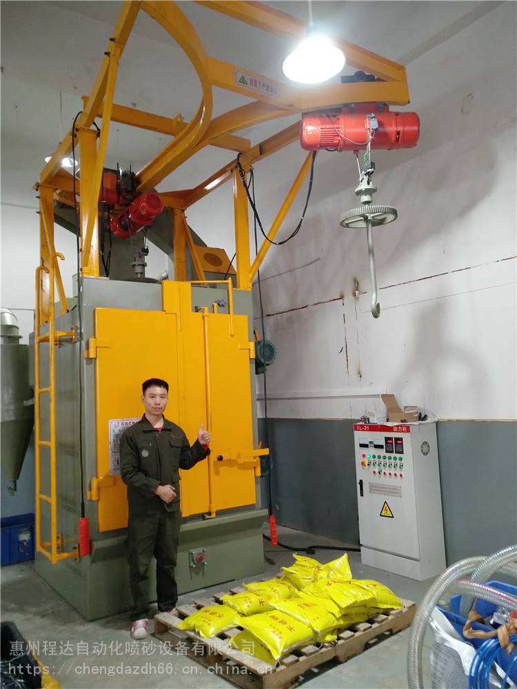 吊挂式打砂机 376吊钩抛丸除锈机设备市场上抛丸机种类很多,常用的分为:吊钩式、履带式、通过式、转盘式等,程达机械现在为您介绍一下本公司供应的遵义市吊钩式抛丸机。