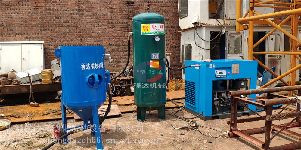 首先您必须拥有一套除锈喷砂设备,此套设备包含有(螺杆式空压机+储气罐+喷砂机主机+喷砂砂管+耐磨喷***+喷砂工作服等),程达机械除锈喷砂设备相对人工打磨除锈来说,具有更快的除锈清理速度,更好的除锈清理效果;程达机械除锈喷砂机优势:1、两个工人除锈打磨效率使用我们的除锈喷砂机半天就能完成;2、人工打磨有死角,不能够彻底给钢结构死角做除锈清理。喷砂除锈无死角清理,清理效果更好。3、相对除锈抛丸机,喷砂机除锈具有造价低(约2-4万元)、占地面积小,方便移动等特点,可以部分代替抛丸清理机械。