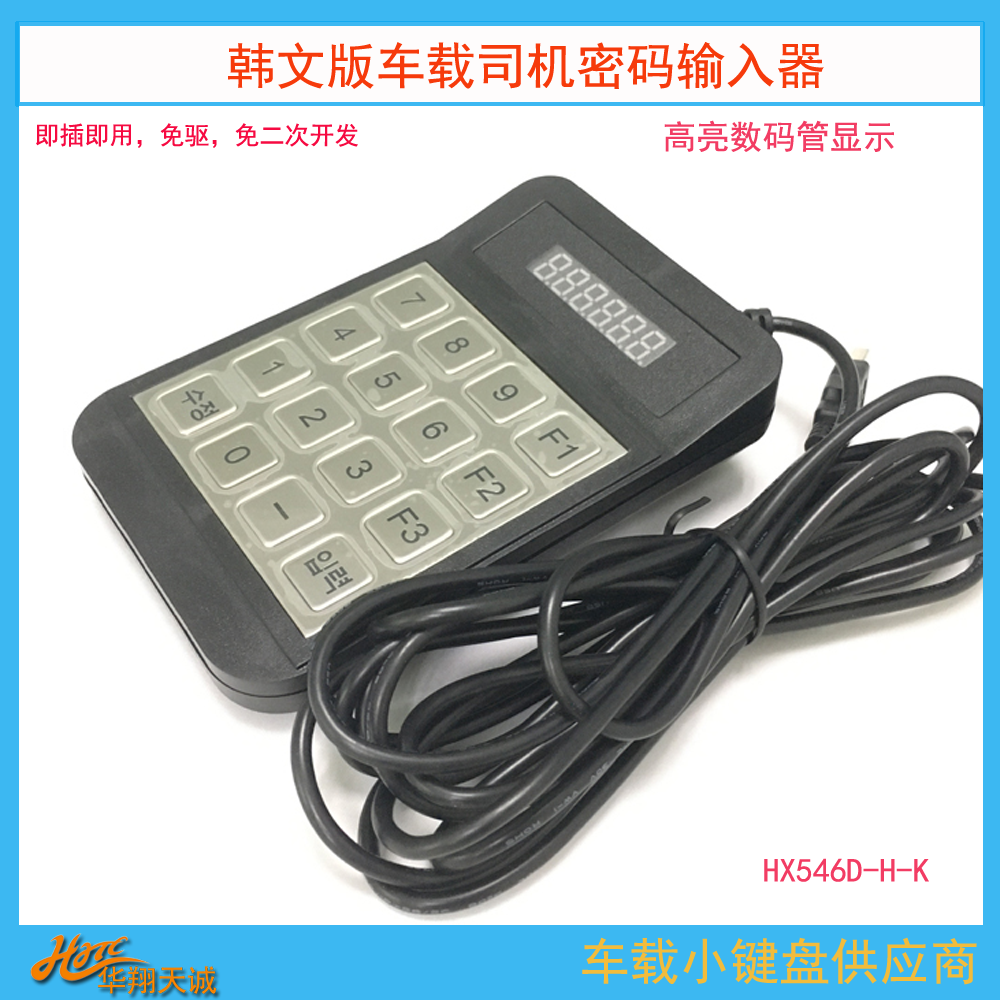 外贸版金属小键盘 金属密码键盘 金属数字小键盘支持定制HX546D-H是一款采用USB-HID通讯带6位数码显示、免二次开发的金属键盘|数字小键盘,共有10金属按键,1个小数点按键,3个功能按键,2个预留按键,一共16个金属按键组成!尺寸:长:140mm 宽:95mm 高:20mm。