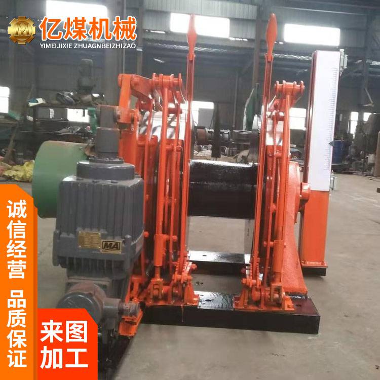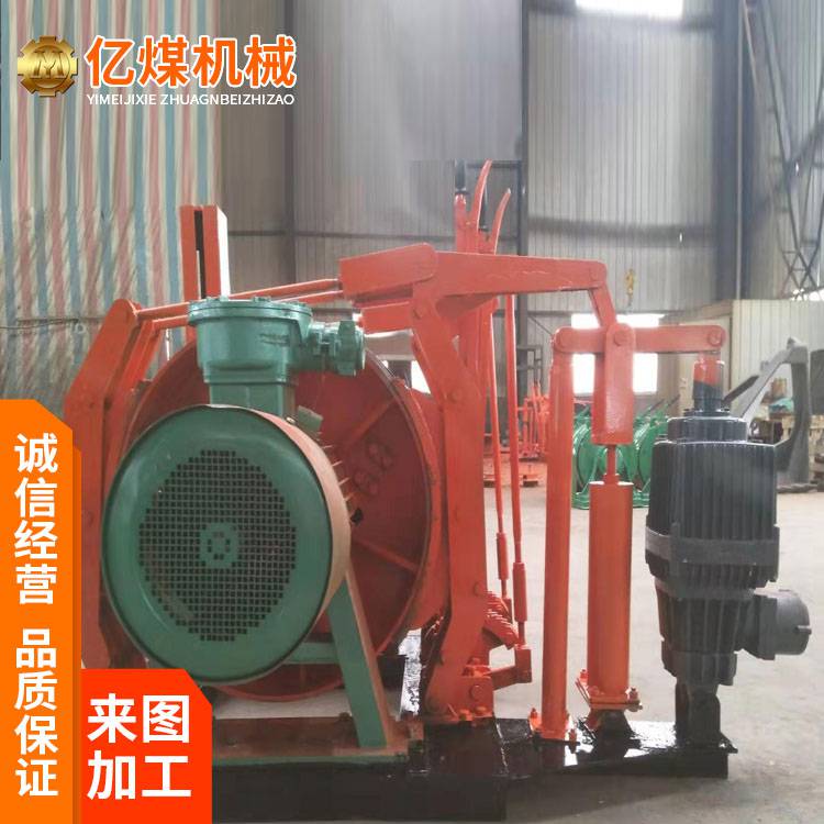 运输绞车主要由隔爆电动机1、滚筒2、偏心轴3、小内齿圈4、抱闸5、刹车轮6、大内齿圈7、双联齿轮8、支承架9及底座10等组成。均采用行星齿轮传动,绞车具有结构紧凑、刚性好、效率高、安装移动方便、起动平稳、操作灵活、制动可靠、噪音低等特点。