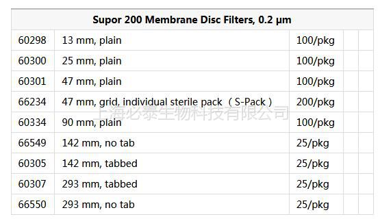 名称:pall 60301 Supor过滤膜片 ***过滤0.2μm,47mm