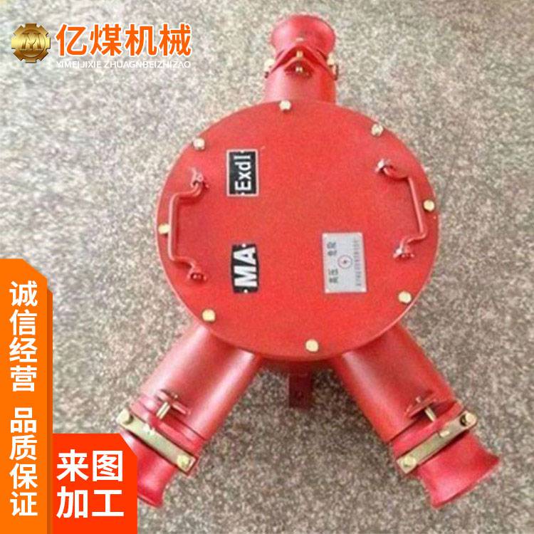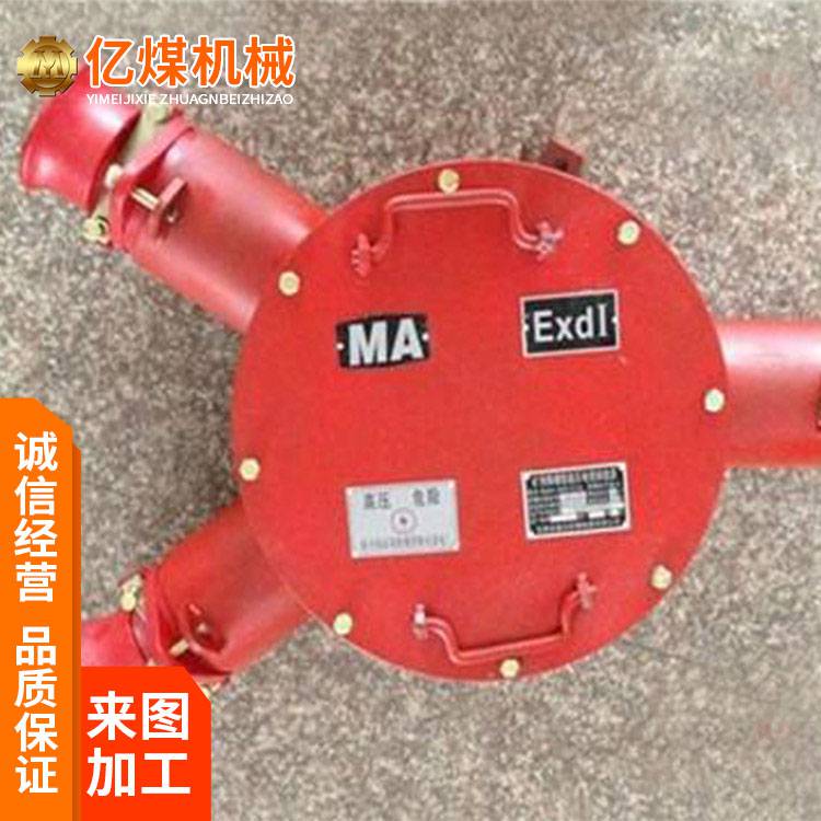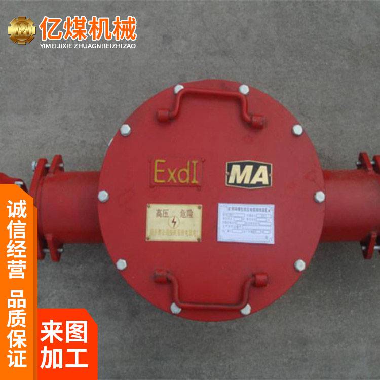 10KV高压接线盒适用于***性气体(***)和煤尘混合物的矿井中,供煤矿井下电压至10千伏,系统额定断开电流至12.5KA供电系统中,连接两段矿用电缆之用。