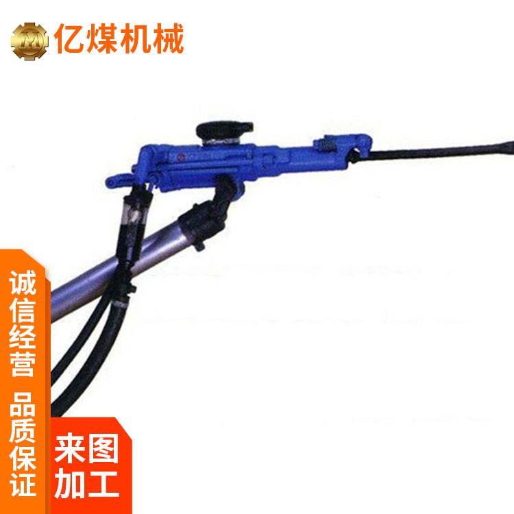 YT23型气腿式凿岩机是现代凿岩工具之一,它采用了气水联动,气腿快速退回,气压调节等机构控制手柄集中于柄体,操作方便,配带的消音装置能随意改变方向,降低噪音,结构简单,便于维修,适合矿山开采、遂道凿岩作业。