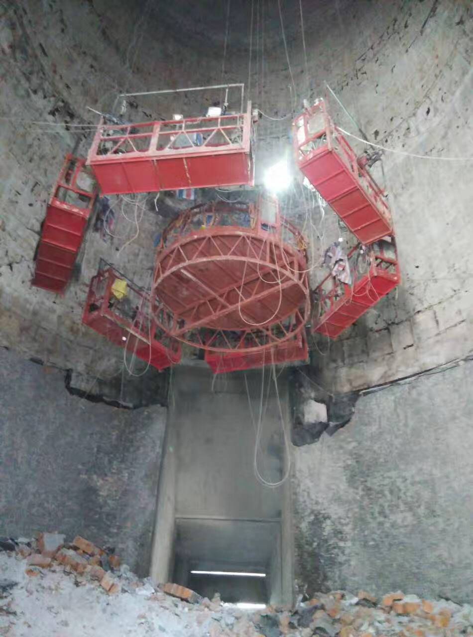 3.5.10对顶部的压顶用机械结合人工打磨至St3级(平整)用耐酸粘结剂做成斜波状处理烟囱顶部积水问题。