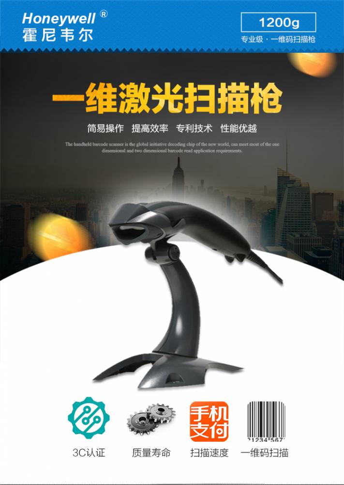 作为举世闻名的Voyager系列扫描器的新生代, 霍尼韦尔1200g具备杰出的扫描性能和可靠性,是寻求***的一维扫描解决方案的终端用户的。