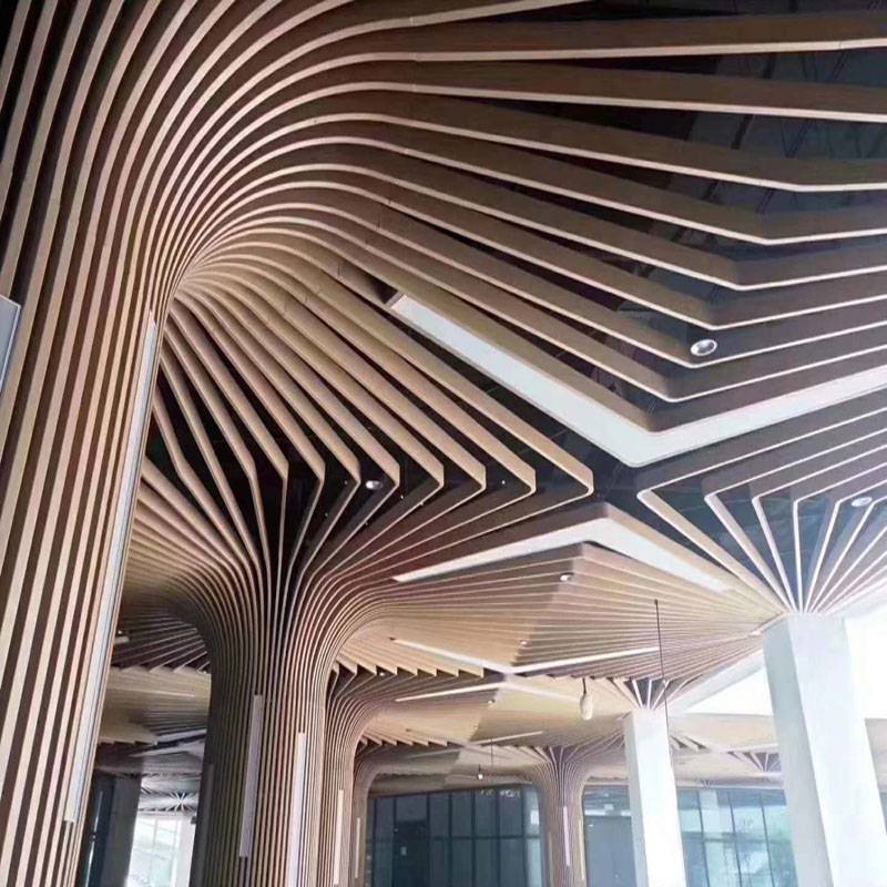 铝合金型材方管,木纹铝方管是建筑室内吊顶外墙装饰材料之一,是一种装饰性垂帘型吊顶天花,线条明快飘逸,整体通透,祥和,色泽丰富。选用适当的高度,以适当视觉角度,能产生幕布效果,使得设计变化万千,美轮美奂。其线条明快整齐,层次分明,体现了简约明了的现代风格,安装拆卸简单方便。