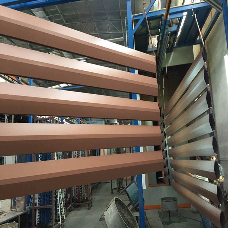 喷粉、氟碳、聚酯、木纹、大理石纹、磨砂拉丝、滚涂、镀铜等,颜色可以是公司色卡,也可以根据广大客商提供的色卡订做。其中木纹铝方通是现阶段***热销的产品。