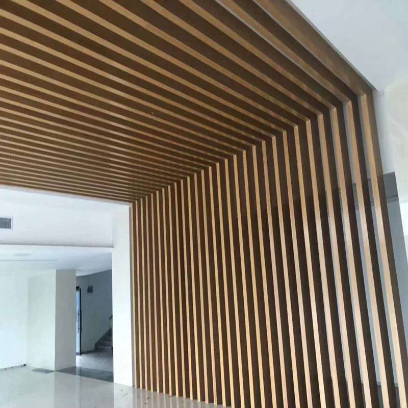 木纹色铝方通产品是通过机器直接成型或人工冷折弯成型,人工成型的铝方通高度、厚度、底宽不受限制,但铝方通长度6米以内随意定制。铝方通是近几年来生产的吊顶材料之一,其特点是通风,透气,其线条明快整齐,层次分明,体现了简约明了的现代风格。