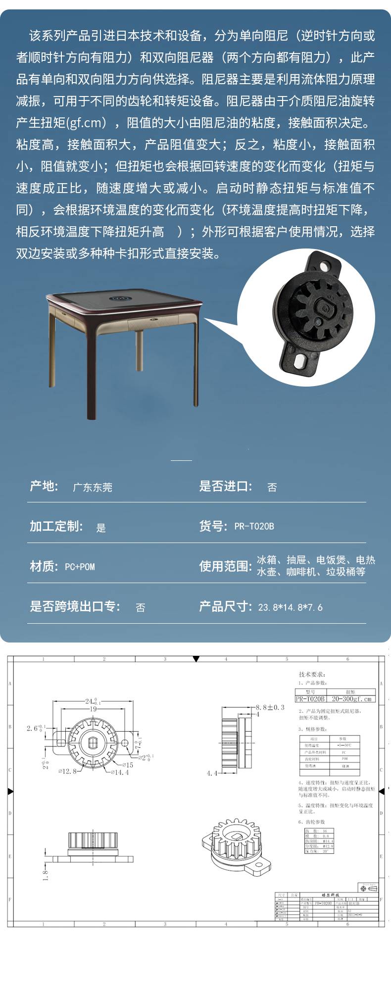 公司业务:主要专业从事阻尼器、缓冲器、门锁等研发、生产、销售的专业厂家。占地面积:现占地5600多平方米,拥有一批高素质的管理和技术专才。生产设备:引进日本生产检测设备,检测设备完善,拥有专业的研发设计,注塑装配团队。产品性能:可按客户要求定制各式产品,本公司生产的阻尼器性能稳定,品质卓越,在-40......