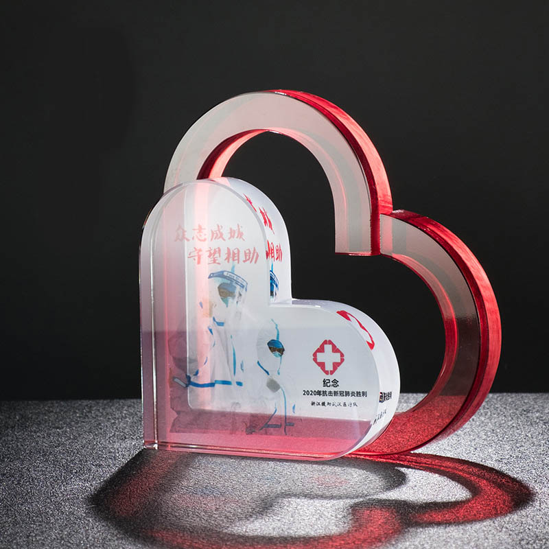 同心协力慈善捐赠纪念爱心水晶奖杯医生护士颁奖水晶奖杯摆件