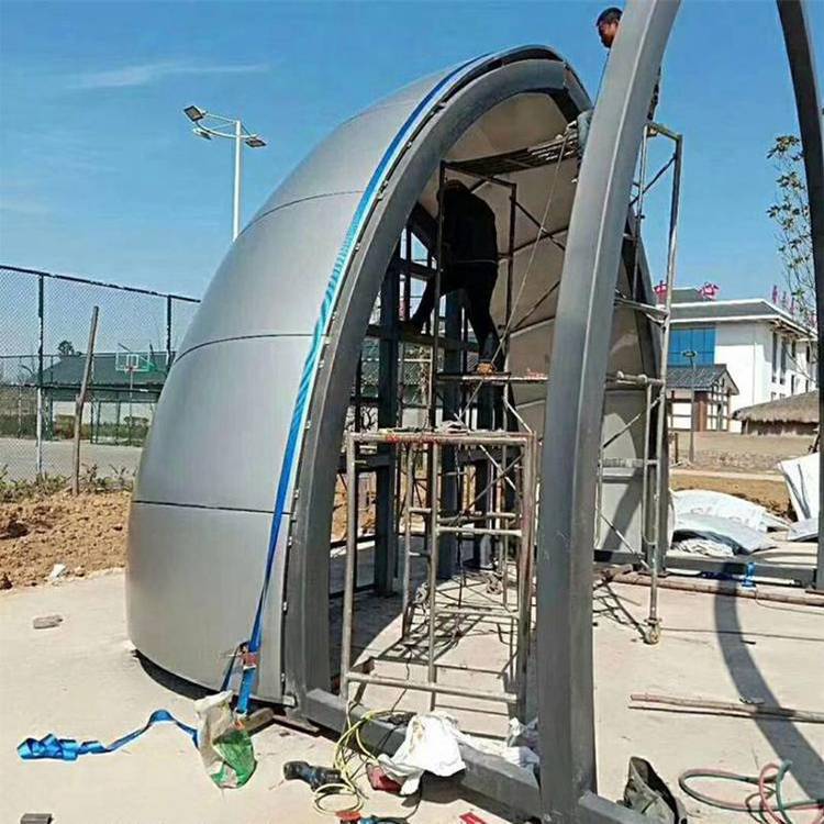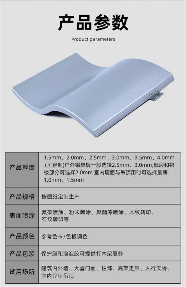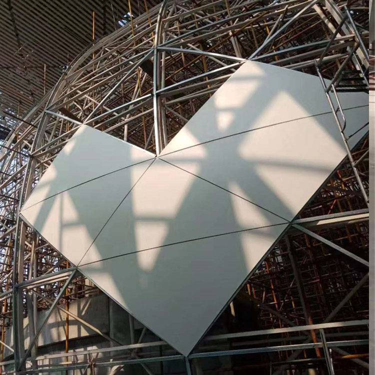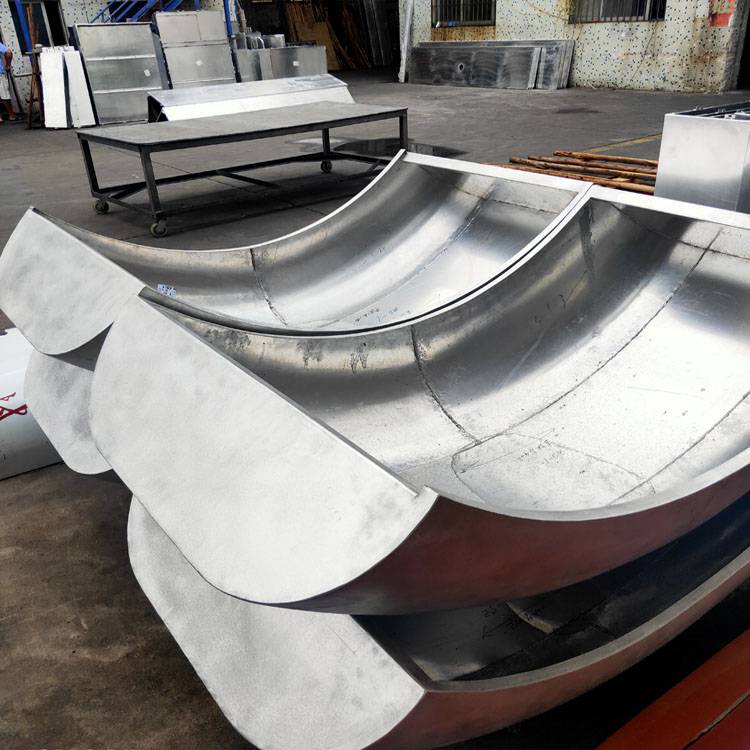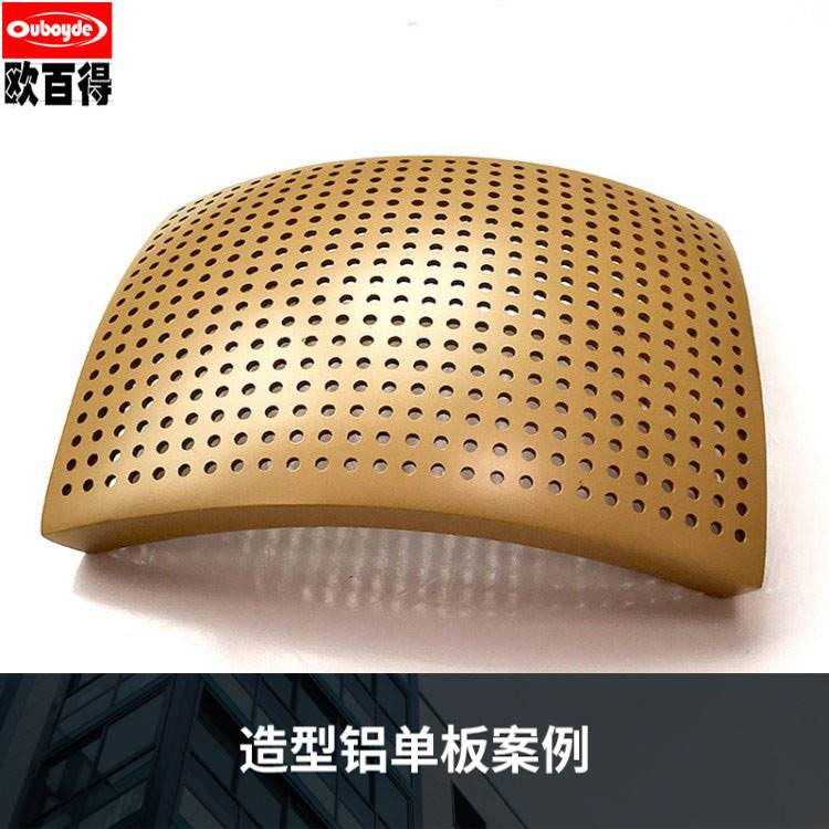 造型铝单板是根据建筑设计风格按图纸通过对平板经过裁剪、折边、弯弧、焊接、打磨、喷涂等工序成型,把铝单板加工成施工所需的形状和尺寸,造型铝板可加工成平面、弧型和球面等各种复杂几何形状。在工厂成型,施工现场不需裁切,固定在骨架上即可。