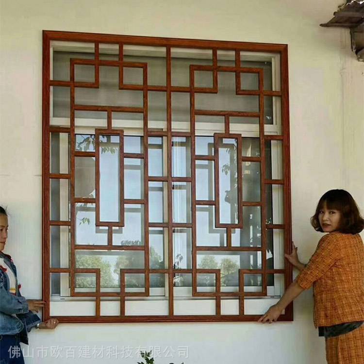 铝窗花有两种加工工艺方式,一种是采用铝板镂空、雕花加工成型,另一种采用铝合金方管烧焊拼接组装而成、各种款式、图案、花格均可提供图纸定制。铝型材方管焊接效果好、强度高,防火性能强,设计独特、坚固耐用。铝窗花装饰给人一种美感,具有开放的视野,通风、透气,线条明快整齐,层次分明,现代感效果较好,同时给人一种原始生态的感觉。
