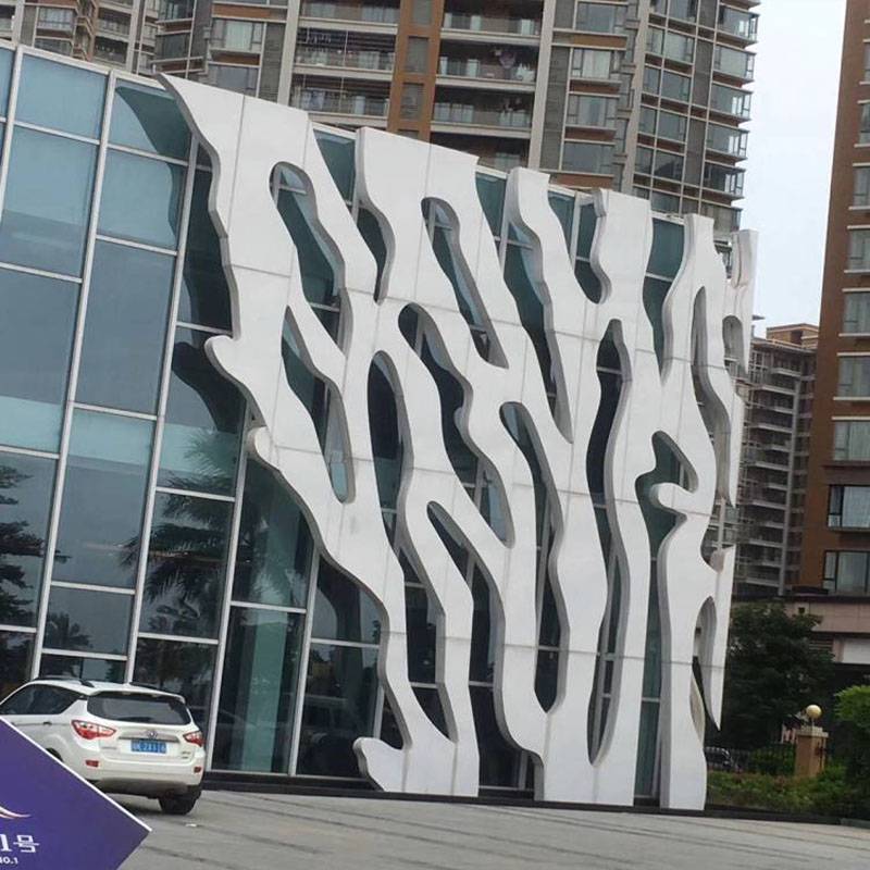 外墙造型铝单板典雅时尚、造型美观大方,立体感强。可根据设计要求定做,可充分体现设计空间的独特和超凡脱俗,其简单流畅的线条也使其自身与环境之间达成了近乎***的结合。