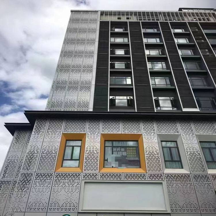 铝单板是采用铝合金板材为基材,再通过开料、折弯、焊接、打磨、喷涂等多道工艺成型,铝单板常用厚度为1.5,20,2.5,3.0mm,材质为1100、3003、状态为H24,常规尺寸为/1220x2440mm其他尺寸可根据设计需求来图加工定制,其构造由面板,平衡筋和角码组成。铝板可加工成平面、弧型和球面等各种复杂几何形状。铝单板幕墙安装施工方便快捷,铝板在工厂成型,施工现场不需裁切只需简单固定即可。