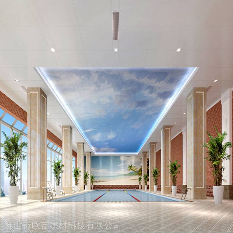游泳大厅吊顶蓝天白云UV打印铝单板