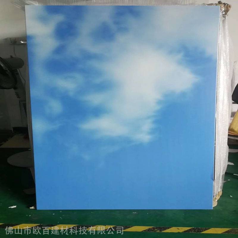 游泳大厅吊顶蓝天白云UV打印铝单板板材在安装时要经加工制成板,先要根据设计师设计的尺寸进行开料、冲角、划线、折弯成型、上加强筋,角码是不用上的,因为在进行打印彩绘时,要求的平整度极高,上了角码板面的平整度得不到保证,所以我们都是配好角码让客户现场拼装,成型后先喷底漆,再进行UV打印铝单板,这就是UV打印铝单板的一个工艺流程。