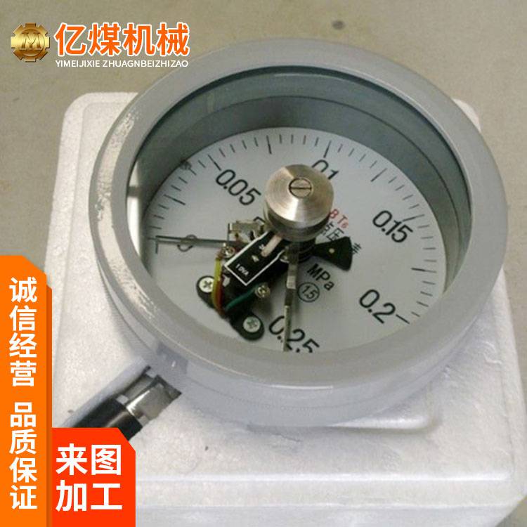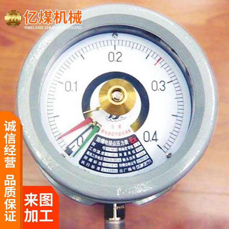 矿用防爆电接点压力表由隔爆外壳、测量系统、电接点组、调节装置和出线盒等组成。防爆电接点压力表的隔爆外壳具有良好的隔爆性能,因此对在正常工作过程中由于火花或电弧的影响,防爆电接点压力表能承受壳体内部的***性气体混合物在一旦引起***时产生的***压力外,并能有效地阻止由此产生的热能向外顺利传播,而只能在壳体内部沿着隔爆接合面的微小缝隙处缓慢地向外扩散。这时,传至壳体外部的瞬间温度已降低到***性气体混合物的燃点温度以下,故不会导致传爆。矿用防爆电接点压力表适宜在有******的场所内用来测量非结晶、非凝固的***性混合物或各种无***性的介质压力。