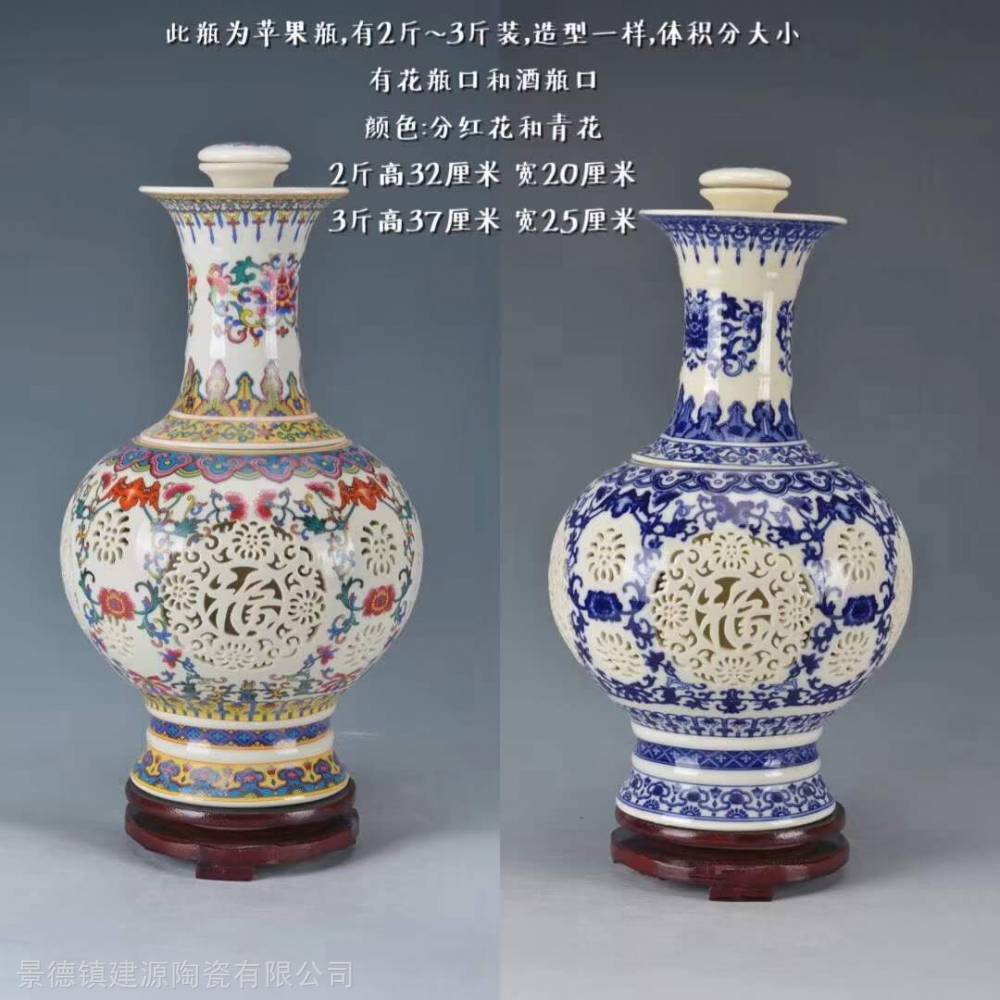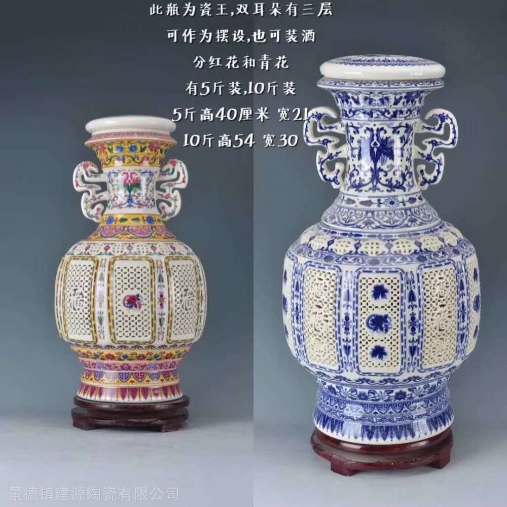 镂空双层陶瓷酒瓶批发 2斤3斤5斤陶瓷酒瓶价格 景德镇瓷王镂空酒瓶厂