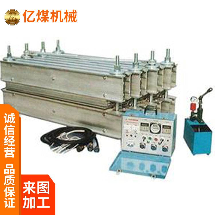 YF-3电热式隔爆型胶带硫化机是输送机械胶带接头硫化胶接的用可搬式轻型硫化设备。采用隔爆型的电加热结构,以水压板为压力装置,具有体积小、单件重量轻、拆装方便,适合于 人力搬动。同时又具有升温快、温度均匀、热效率高等特点,主要适用于煤矿及有Ⅰ类场所相等防爆等级的电厂、码头、化工、冶金等部门使用,在本机提供的技术参数和执行正确的硫化胶接 工艺下,能保证阻燃芯输送带,钢绳芯输送带、尼龙运输胶带和普通帆布胶带接头强度原胶带拉力强度的90%以上,不仅接头光滑与原带无异而且能减少对滚筒的 磨损和延长输送机及运输带的使用寿命。